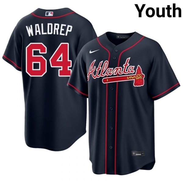 ATL Braves Hurston Waldrep Navy #64 Youth Game Jersey 149495-234