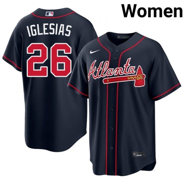 ATL Bravos Raisel Iglesias Navy #26 Womens Embroidery Jersey 479125-781