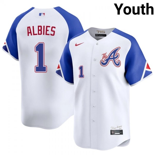 Represent the Braves' bullpen ace with this official Atlanta Braves Ozzie Albies White City Connect #1 Youth Embroidery Jerseys. Designed for the dedicated fan, this jersey combines the classic look of Truist Park with modern comfort technology, making it perfect for game days, tailgates, or casual wear.