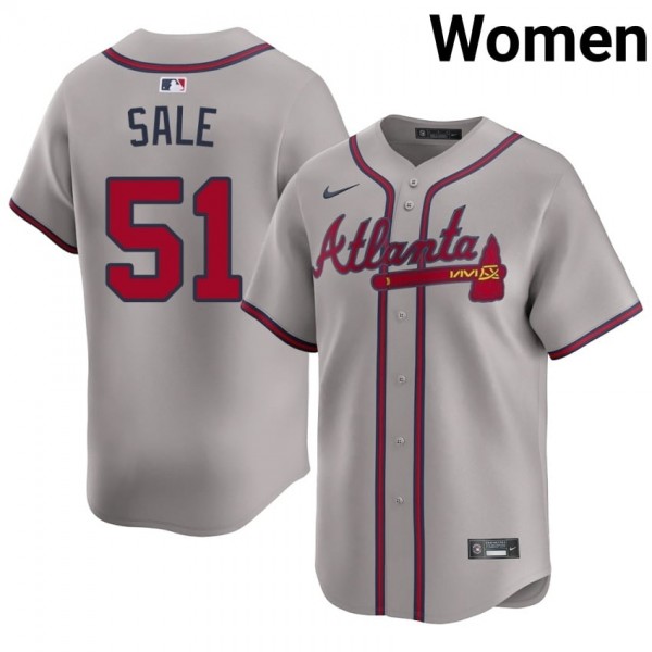 Represent the Braves' bullpen ace with this official Atlanta Bravos Chris Sale Gray #51 Womens Authentic Jerseys. Designed for the dedicated fan, this jersey combines the classic look of Truist Park with modern comfort technology, making it perfect for game days, tailgates, or casual wear.