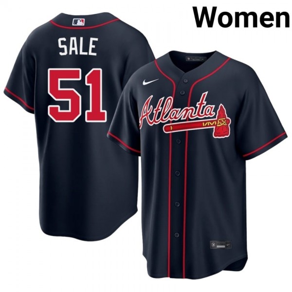 Atlanta Bravos Chris Sale Navy #51 Women Stitched Jerseys 561461-872