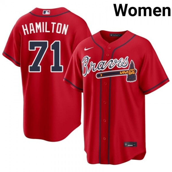 Represent the Braves' bullpen ace with this official Atlanta Bravos Ian Hamilton Red #71 Women 2026-27 Jersey. Designed for the dedicated fan, this jersey combines the classic look of Truist Park with modern comfort technology, making it perfect for game days, tailgates, or casual wear.