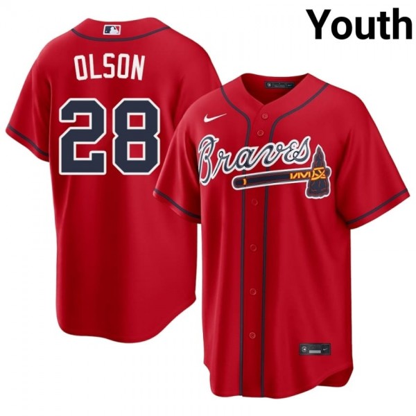 Atlanta Bravos Matt Olson Red #28 Youth Stitched Jersey 163898-550