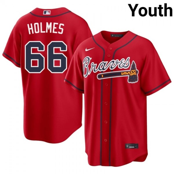 Braves Country Grant Holmes Red #66 Youth Official Jersey 302352-680