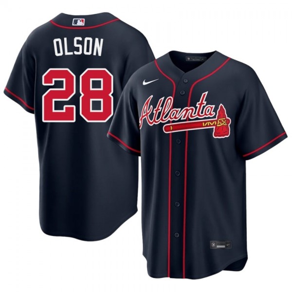Represent the Braves' bullpen ace with this official Braves Matt Olson Navy #28 Mens Popular Jersey. Designed for the dedicated fan, this jersey combines the classic look of Truist Park with modern comfort technology, making it perfect for game days, tailgates, or casual wear.