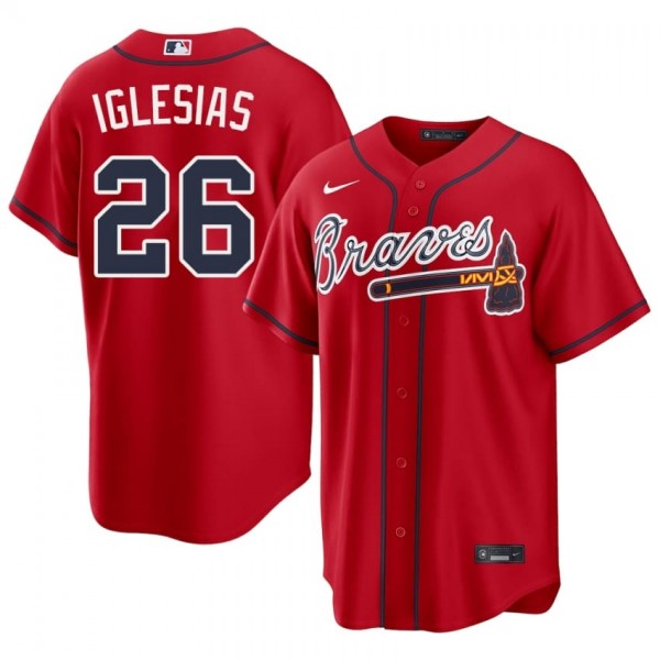 Represent the Braves' bullpen ace with this official Bravos Raisel Iglesias Red #26 Mens Popular Jersey. Designed for the dedicated fan, this jersey combines the classic look of Truist Park with modern comfort technology, making it perfect for game days, tailgates, or casual wear.